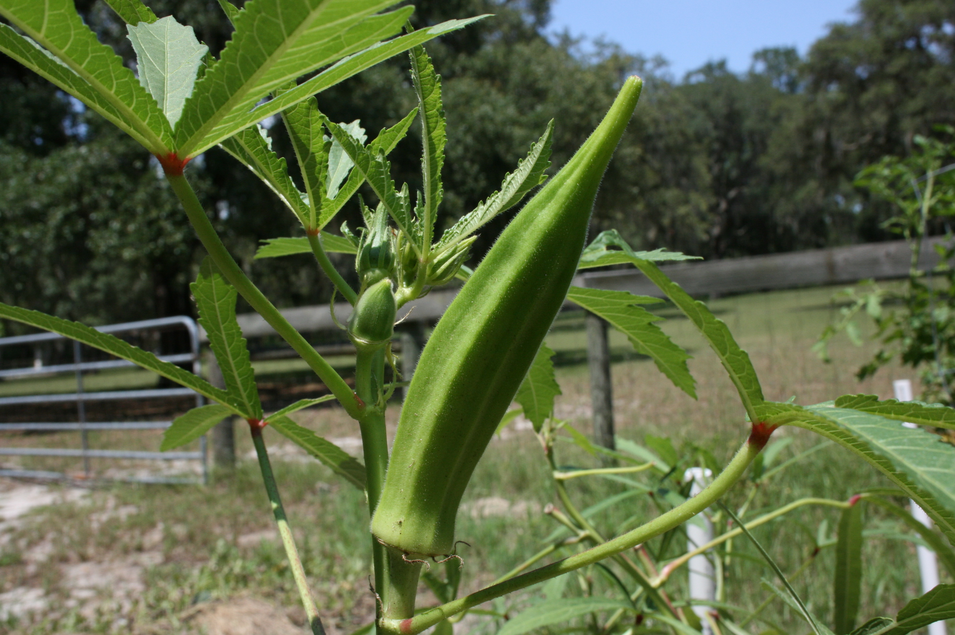 The garden seems to be on vacation as the sustained heat has all but dried everything to a crisp. But there is a friend in the garden that is still going strong and that is OKRA!!