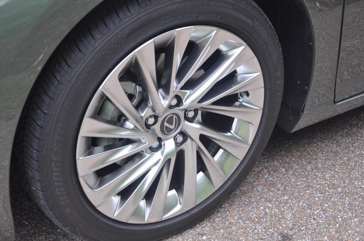 The six-speed automatic transmission with paddle-shifters is electronically controlled and continuously variable. Final drive is 3.389 compared to the 2.561 of the 8-speed V6 ES 350. The steering is electric rack and pinion with 2.7 turns lock to lock and positions the assist directly on the rack for more precise feedback. The curb to curb turning radius is outstanding at under twenty feet. Weight distribution and curb weight were not available for the 300h. However, the ES 350 weight is a light 3,649 lbs, distribution front to rear is 61/39. Expect the ES 300h to be approximately a few hundred pounds heavier.