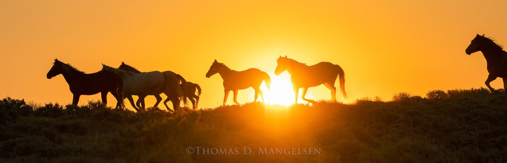 Growing up in Nebraska I spent much of my youth on farms and ranches and have a deep respect for those families that are not welfare ranchers. I recently spent time photographing the North Lander herd of wild horses in Central Wyoming with my friend Jim Brown, while never a rancher, his family is fifth generation Wyoming ranchers, Jim works as a photographer, and wild horse advocate. We got to know the family groups, the herd stars, the young bucks, and, one sunset, photographed the entire herd stampeding along a dusty ridge. Bands of horses seemed to appear out of nowhere to join the stampede. They were seemingly running for no reason other than their wild spirit.