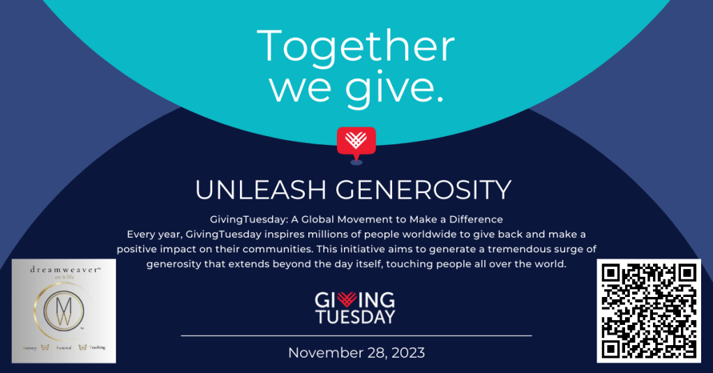 Dreamweaverarts is thrilled to announce its participation in the upcoming Giving Tuesday event on November 28, 2023. We are honored to be a part of this wonderful initiative. The Dreamweaverarts’s mission is to create a community platform that promotes art while addressing pressing issues of our time, such as food, housing, education, health, environmental, and job insecurities.